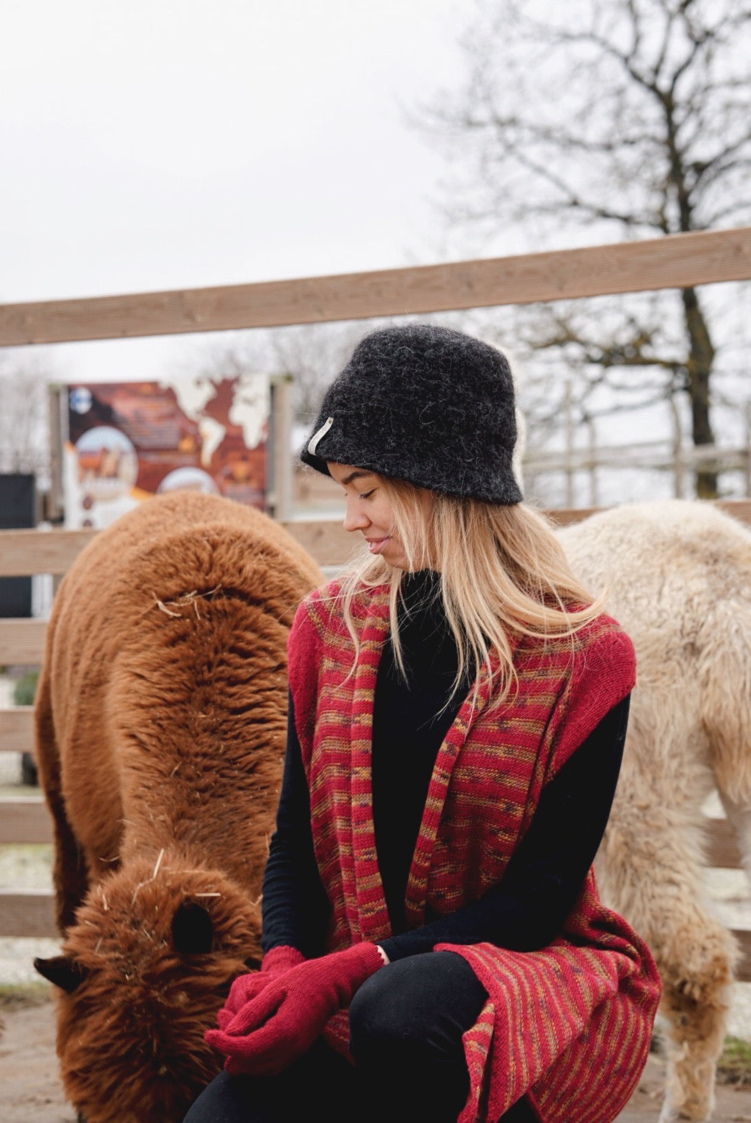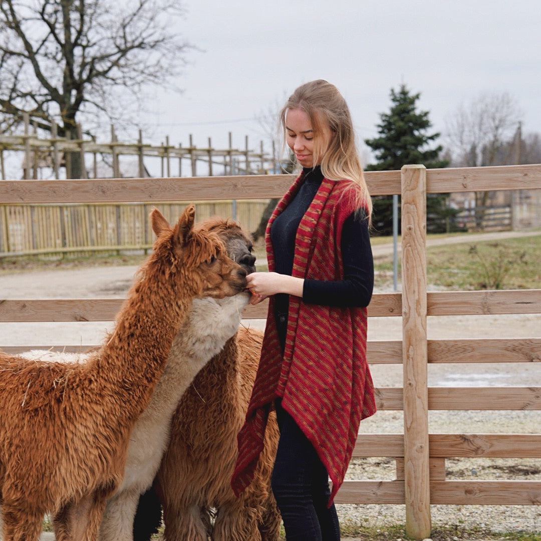Koostumus: 100 % alpakkaa, joka sisältää myös käsinvärjättyä lankaa.
